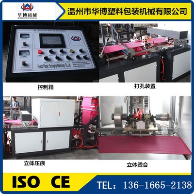 2.工序流程:卷筒料---對(duì)折---穿繩---熱合---對(duì)折---燙把---定位---打孔---立體---熱合---切斷---收集成品---無紡布立體燙把一體制袋機(jī)